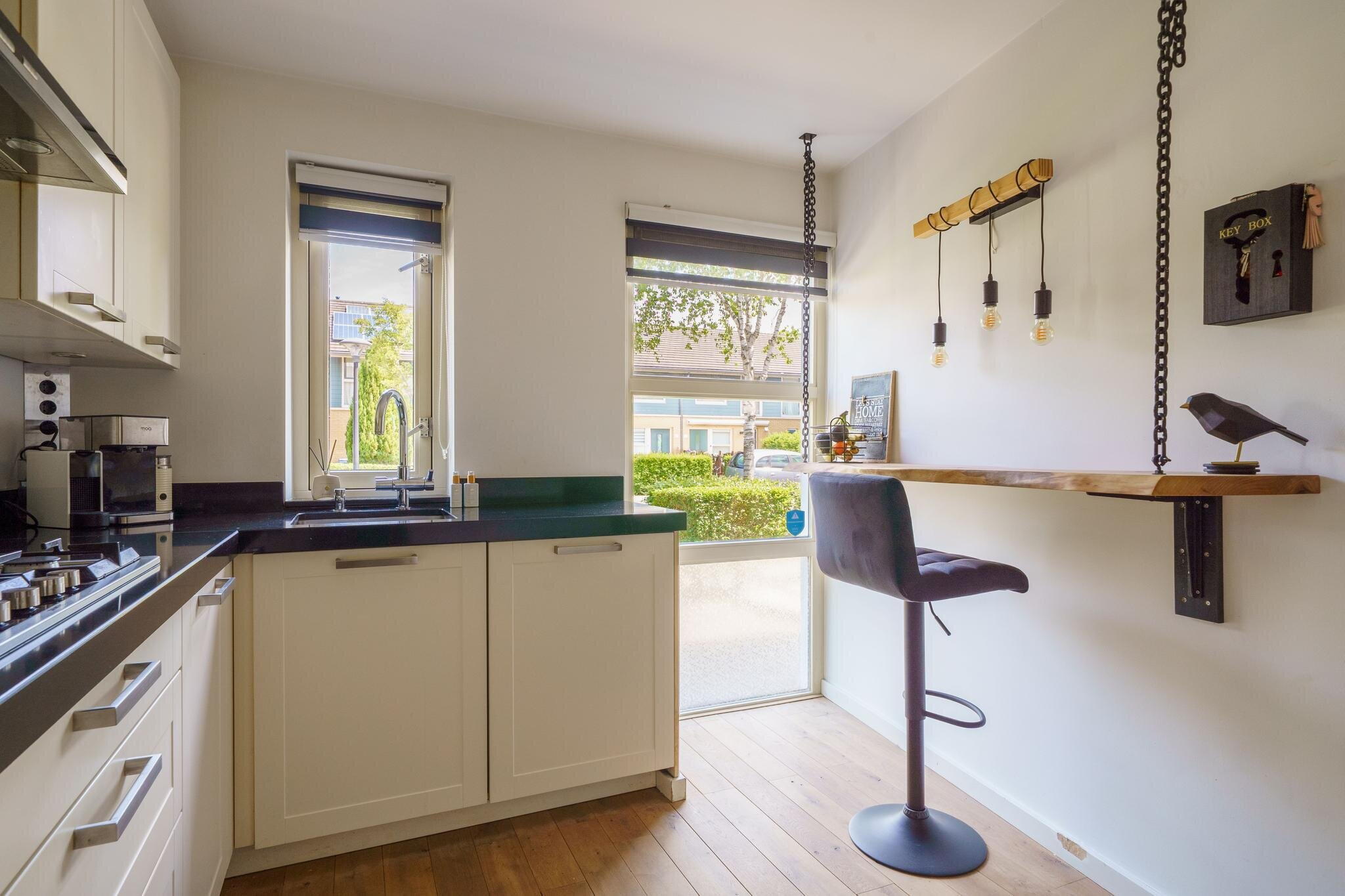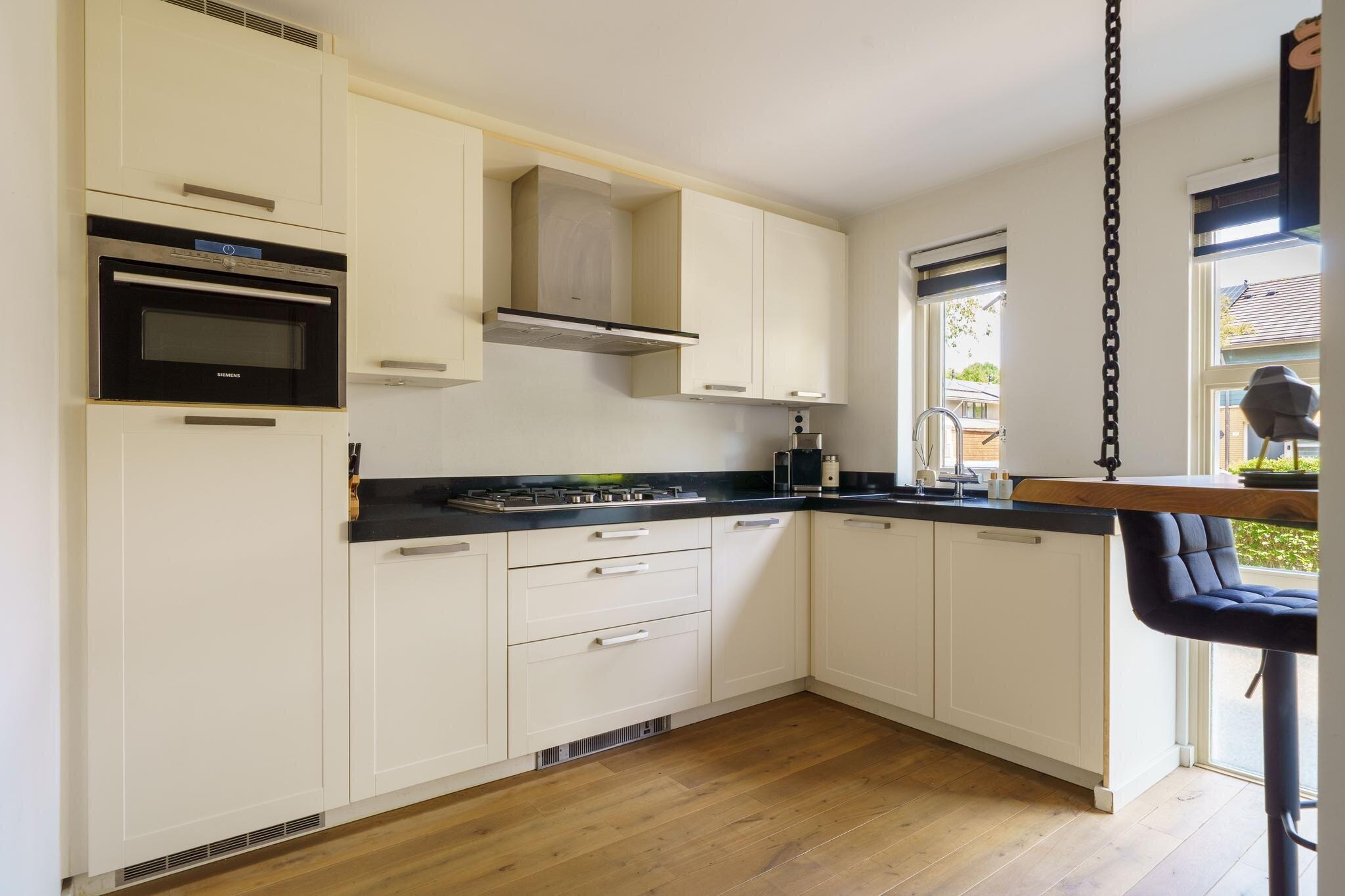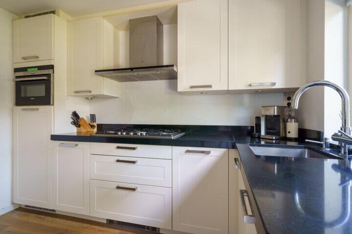 - Inbouwkeuken met composiet werkblad en alle wenselijke apparatuur;
