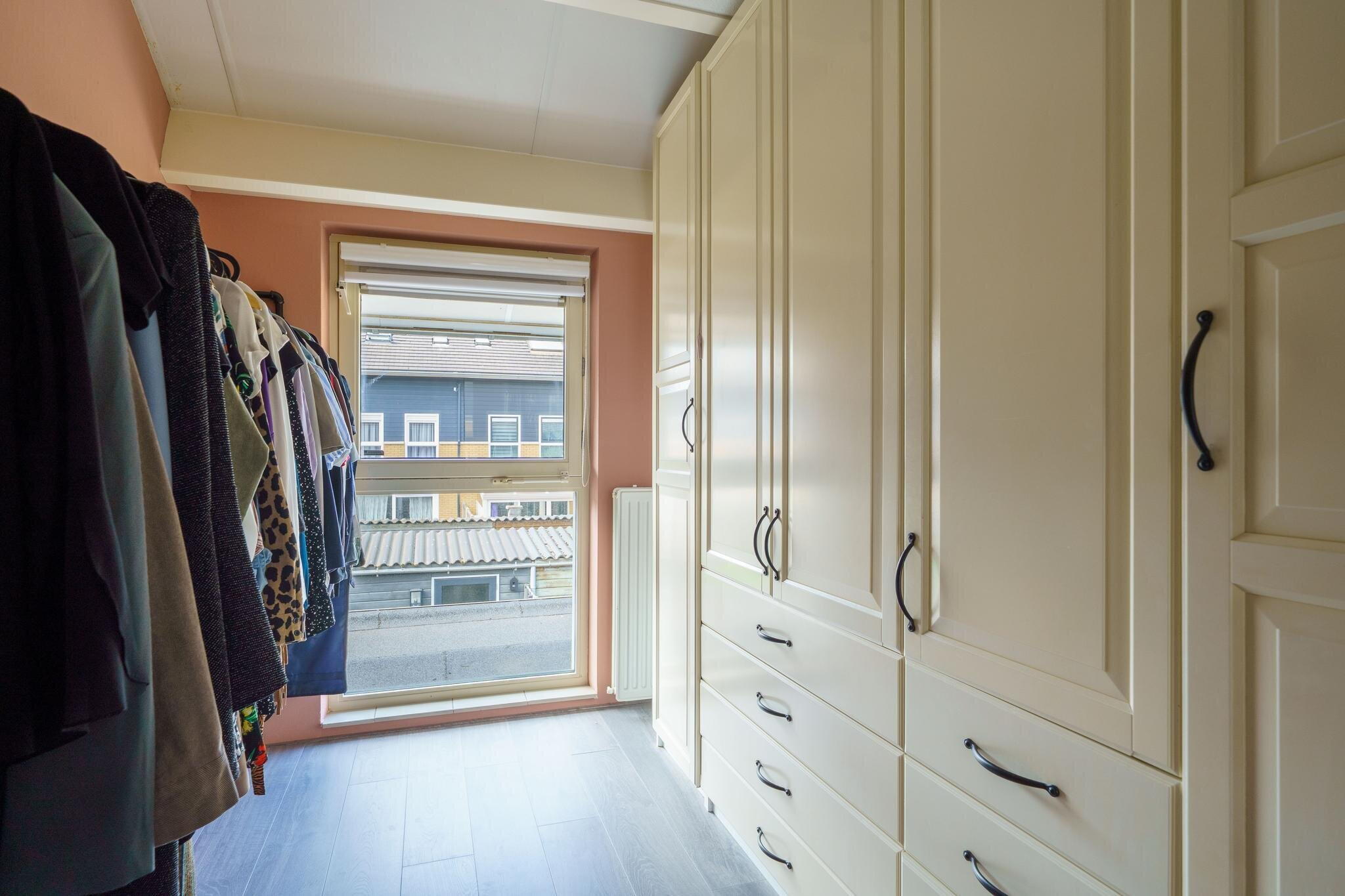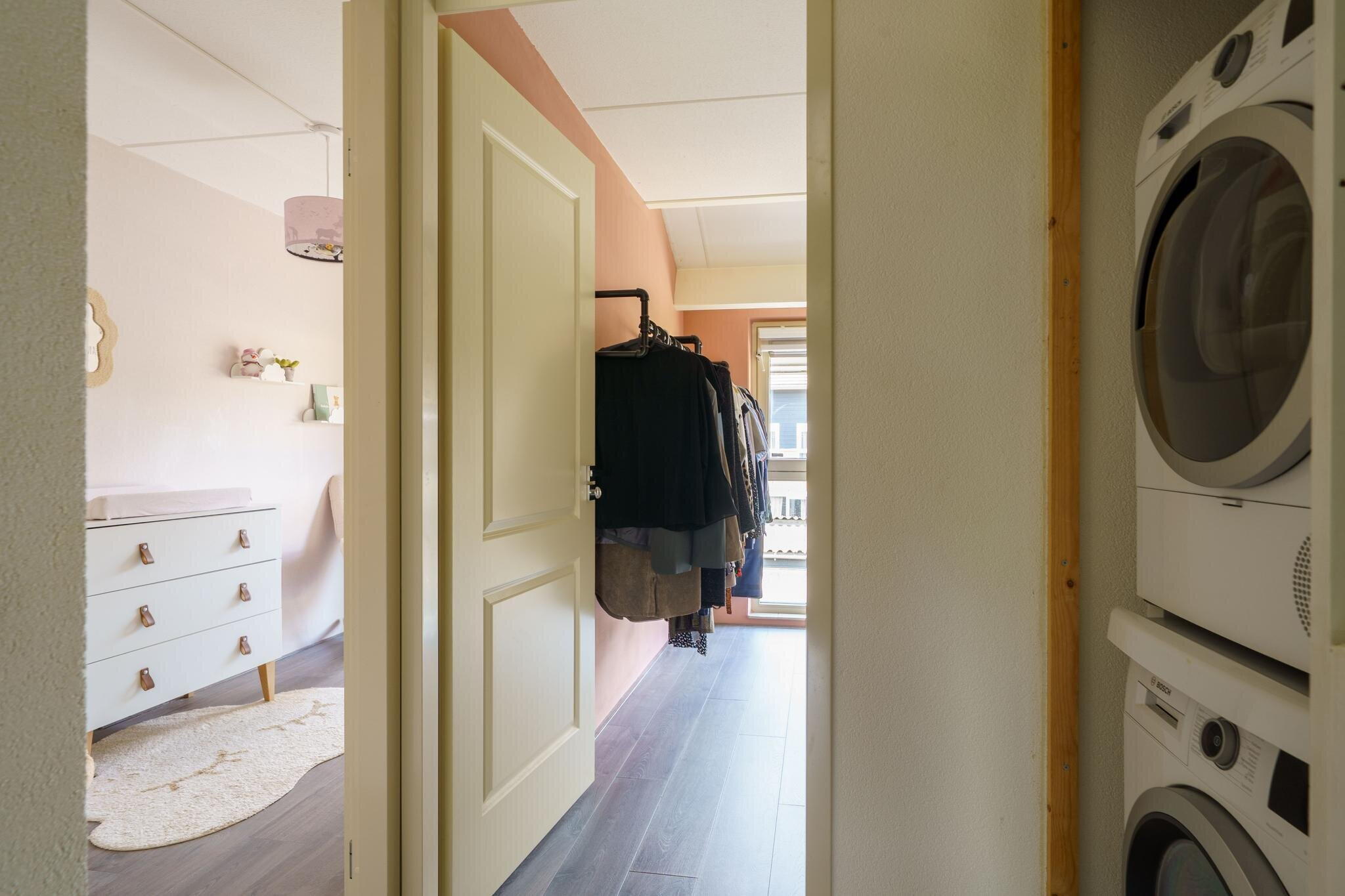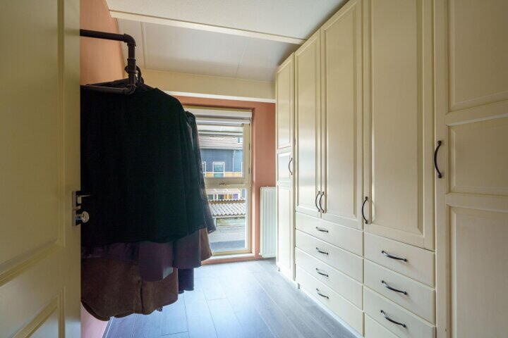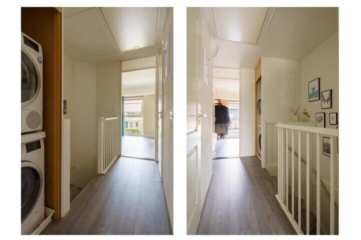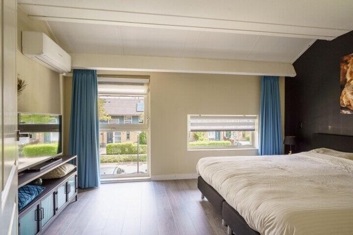 Ruime overloop met toegang tot de 3 slaapkamers en de badkamer. De hoofdslaapkamer is aan de voorzijde over de gehele breedte van de woning gelegen en v.v. airconditioning. De badkamer is in 2024 deels gerenoveerd en uitgevoerd met een royale inloopdouche, wastafel, 2e toilet (zwevend closet) en een designradiator. Tevens een verlaagd plafond met inbouwverlichting en speakers. Op de overloop bevindt zich een kast met daarin de aansluitingen voor de wasmachine en droger. Via een luik met vlizotrap op de overloop bereikt u de grote zolder, ideaal voor al uw spullen. Hier bevinden zich tevens de cv-ketel en de mv-unit. De gehele eerste verdieping is voorzien van laminaat.