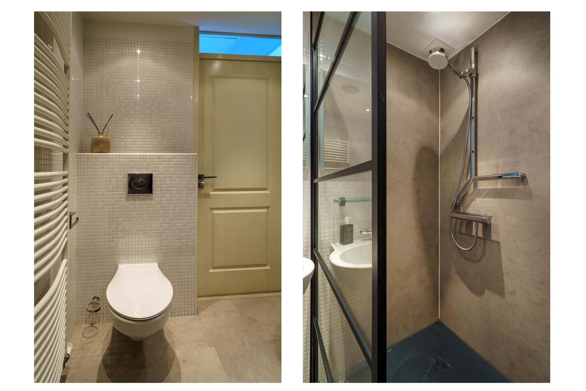 - Moderne badkamer v.v. inloopdouche, 2e toilet en wastafelmeubel;