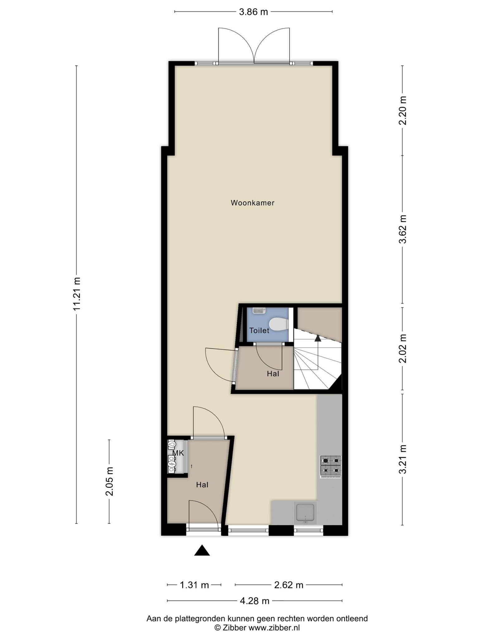 - 28 m² (6.15 meter diep en 4.5 meter breed)